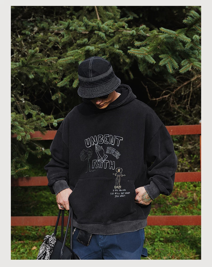 Washed Print Fleece Hoodie