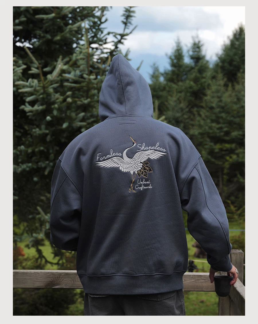 Crane Embroidered Fleece Hoodie
