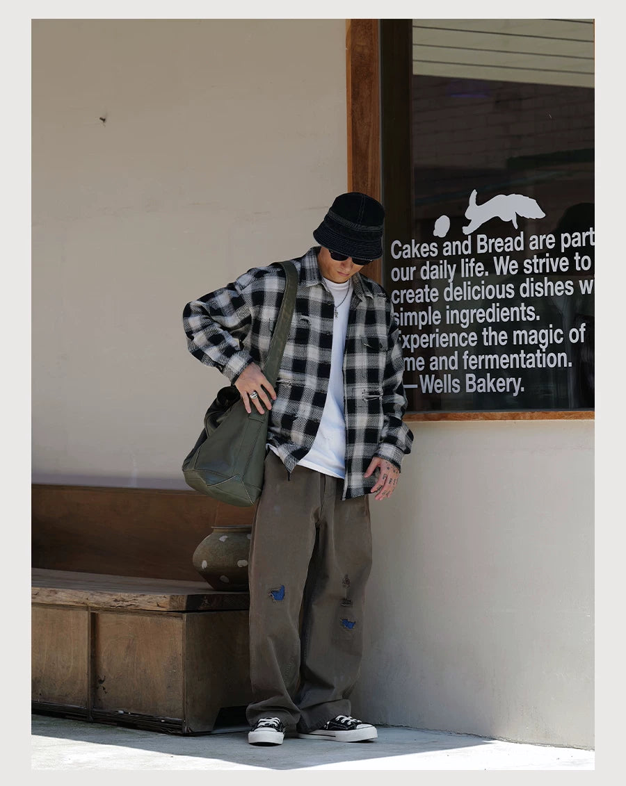 Herringbone Straight-Leg Pants